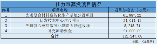 此番上市,佳力奇拟募集资金用于先进复合材料数智化生产基地建设项目、研发技术中心建设项目、先进复合材料数智化制造系统建设项目以及补充流动资金。
