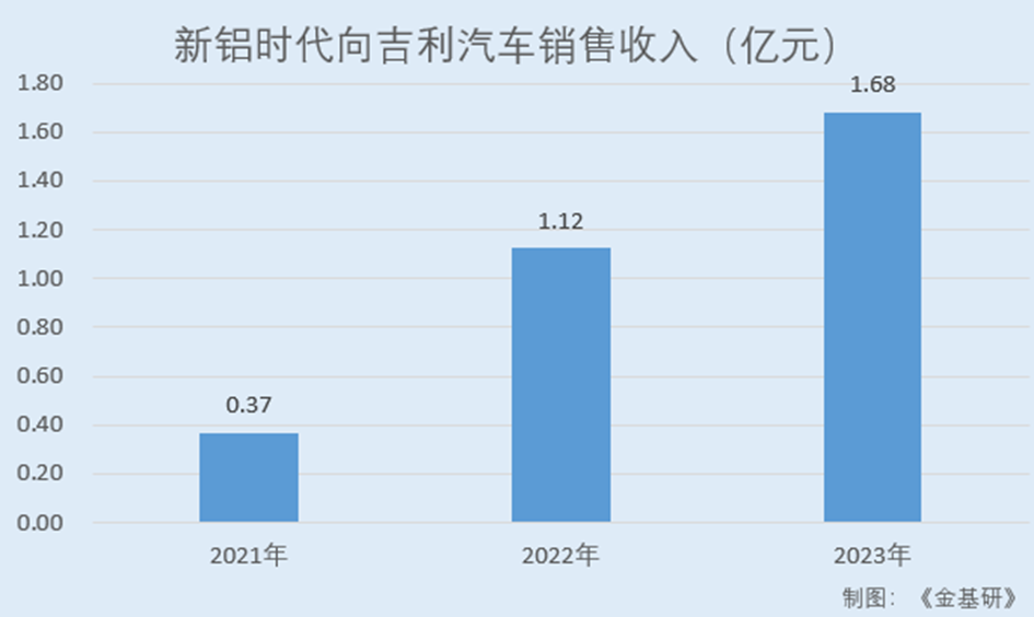 2021-2023年,新铝时代向第二大客户吉利汽车销售收入分别为0.37亿元、1.12亿元、1.68亿元,年均复合增长率达113.19%。