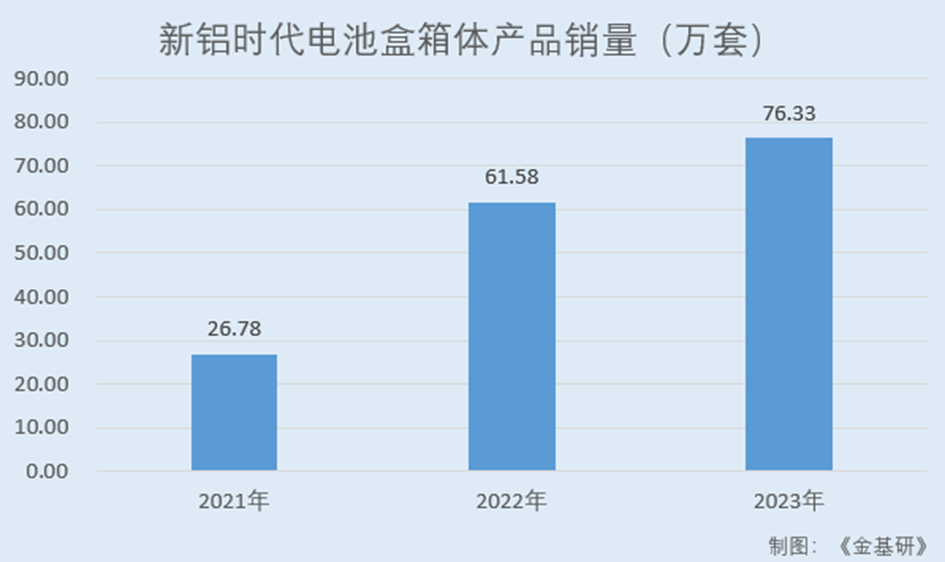 2021-2023年,新铝时代电池盒箱体产品产量分别为28.91万套、71.50万套、72.02万套;销量分别为26.78万套、61.58万套、76.33万套。
