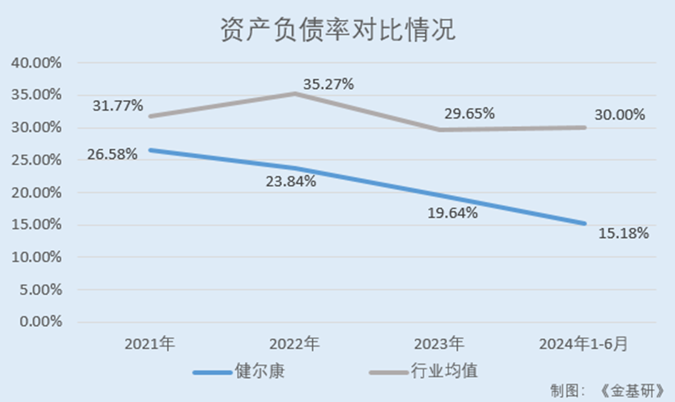 同期,健尔康的资产负债率分别为26.58%、23.84%、19.64%、15.18%。