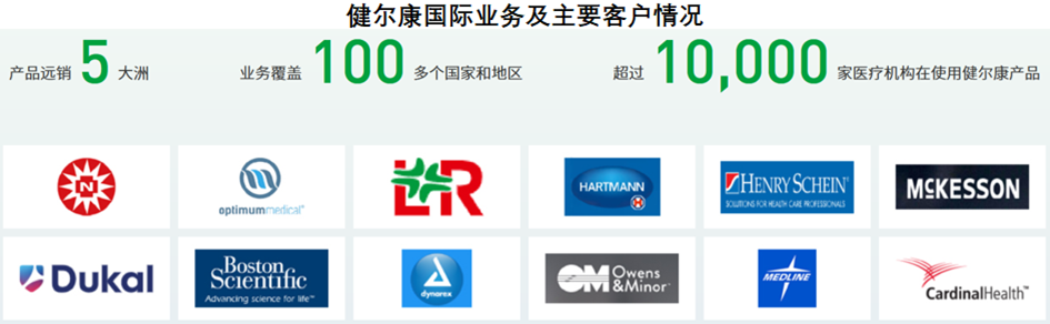 国际市场方面,健尔康产品销往美国、欧洲、中东、拉丁美洲、非洲等多个国家和地区,与境外多家知名医用敷料品牌商建立了长期稳定的合作关系,主要包括Cardinal、Medline、Owens & Minor、Mckesson、Hartmann等。上述客户均为全球性医疗服务提供商和医疗用品品牌商或生产商,市场基础牢固、销售渠道通畅、产品需求稳定。