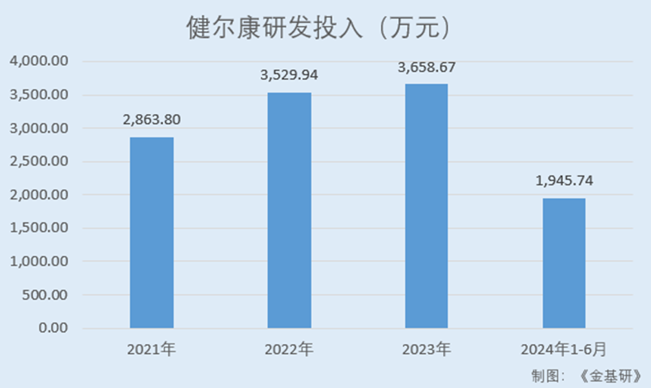 2021-2023年及2024年1-6月,健尔康研发投入分别为2,863.80万元、3,529.94万元、3,658.67万元、1,945.74万元。