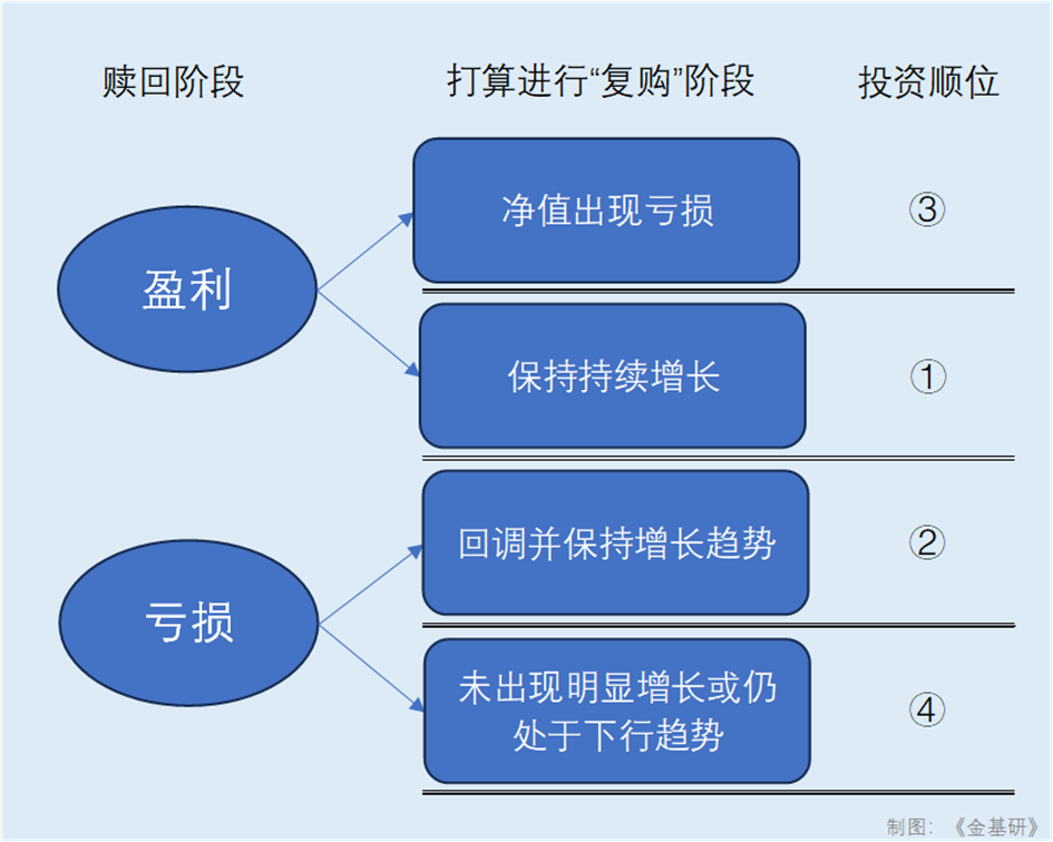 从上述来看大致分为四种情形,通常而言,基金“复购”顺位可选择从持续增长的基金开始,之后是在赎回阶段亏损后通过回调增长的基金,再者是曾经盈利后出现下行的基金,最后则是亏损且在“空窗期”未出现明显增长或仍处下行趋势的基金。
