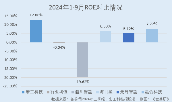 经金基研计算,2021-2023年及2024年1-9月,上述四家宏工科技同行业可比公司的ROE均值分别为10.28%、14.96%、8.58%、-0.04%。