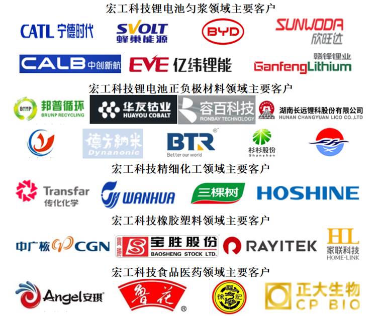 在锂电池匀浆领域,宏工科技已成为宁德时代、比亚迪、中创新航、蜂巢能源、亿纬锂能、欣旺达、赣锋锂业等知名客户的稳定供应商,业务规模持续增长。