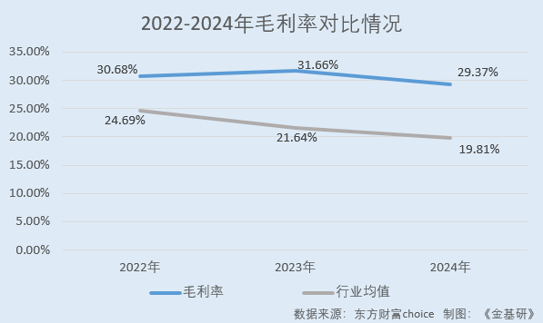 据东方财富choice数据,2022-2024年,常青科技的毛利率分别为30.68%、31.66%、29.37%,ROE分别为25.63%、12.58%、9.11%。