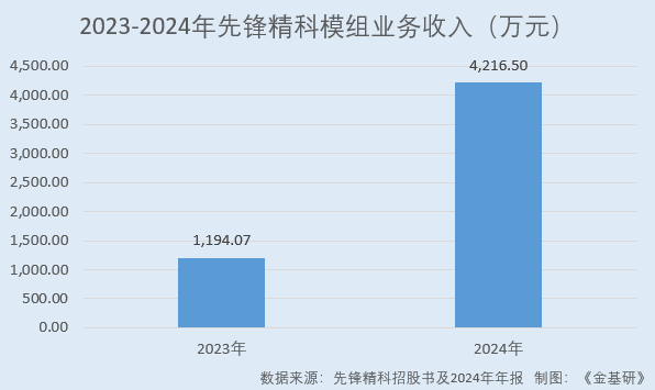 据先锋精科招股书及2024年年报数据,2023-2024年,先锋精科的模组业务收入分别为1,194.07万元、4,216.50万元,2024年同比增长253.12%。