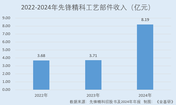 2022-2024年,先锋精科工艺部件收入分别为3.68亿元、3.71亿元、8.19亿元,年均复合增长率达49.09%。