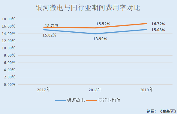 2017-2019年,银河微电期间费用率分别为15.02%、13.9%、15.08%。