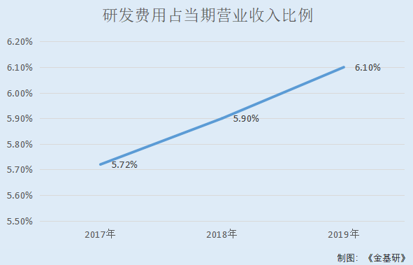2017-2019年,银河微电的研发费用分别为3,498.62万元、3,454.33万元、3,221.85万元,占当期营业收入的比重分别为5.72%、5.9%、6.1%。三年合计研发投入金额1.02亿元,占累计营业收入的5.9%。
