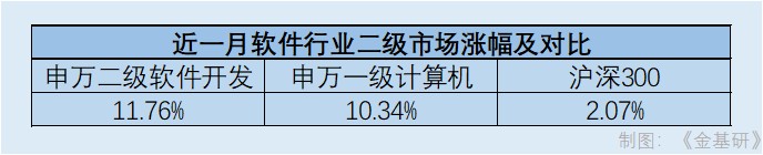 在二级市场的表现上,截至2026年1月29日根据申万行业划分,申万计算机近一个月涨幅为10.34%,而申万软件开发近一个月的涨幅为11.76%。
