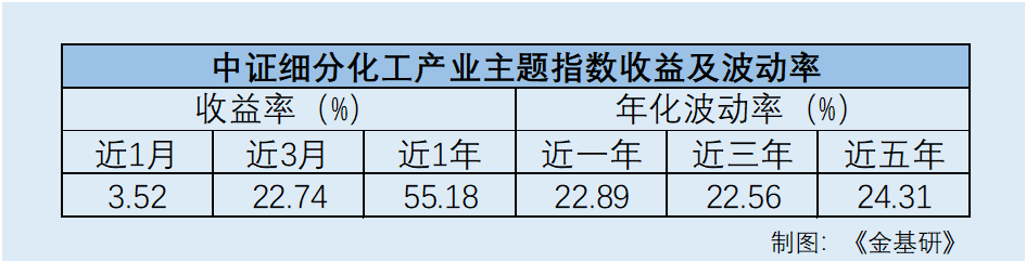 从业绩表现来看,中证细分化工产业主题指数具备亮眼的收益能力与中长期成长性,截至2026年2月6日,指数近1月、近3月、近1年涨幅分别为3.52%、22.74%、55.18%,年化波动率近1年、近3年、近5年分别为22.89%、22.56%、24.31%。