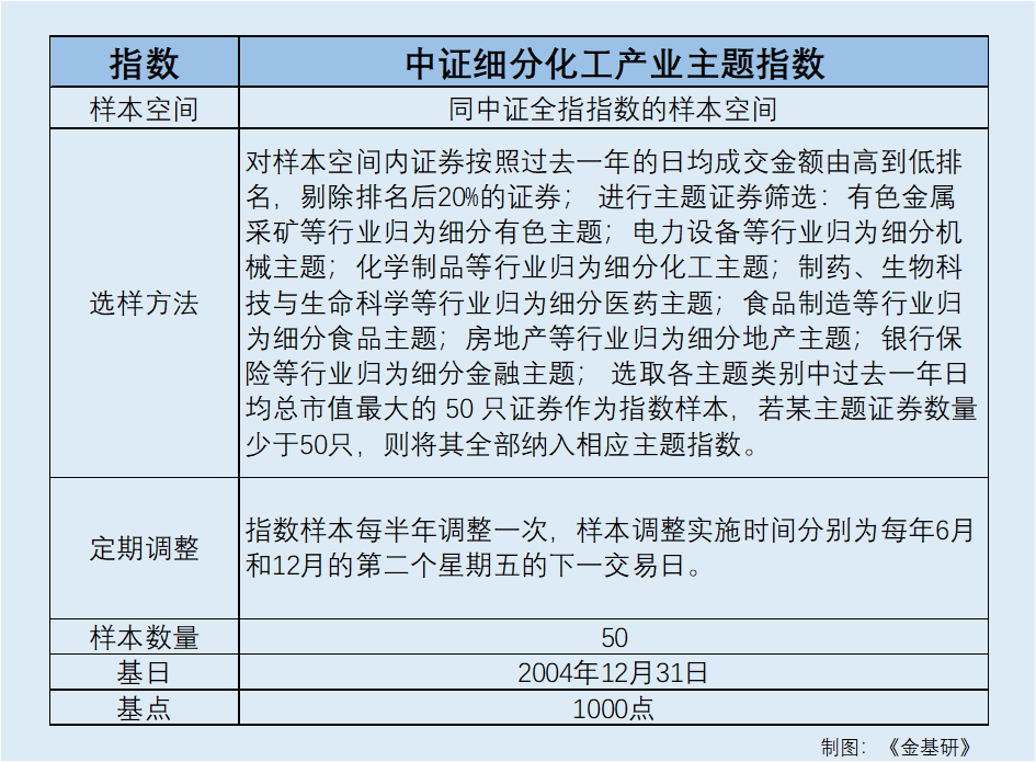 中证细分化工产业主题指数样本限定于中证全指,精准覆盖化学纤维、原料、制品等核心细分领域,剔除边缘业务占比高的企业,确保成分股“化工基因”纯正,选样兼顾市值、流动性与经营质量,筛选50只证券作为成分股。