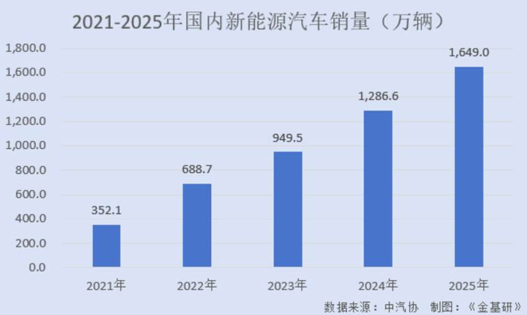 根据中汽协数据,2021-2025年,全国汽车销量分别为2,627.5万辆、2,686.4万辆、3,009.4万辆、3,143.6万辆、3,440.0万辆,CAGR为6.97%;国内新能源汽车销量分别为352.1万辆、688.7万辆、949.5万辆、1,286.6万辆、1,649.0万辆,CAGR为47.11%。