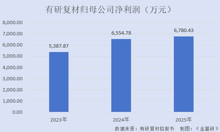 同期,有研复材的归母净利润分别为5,387.87万元、6,554.78万元、6,780.43万元,CAGR为12.18%。