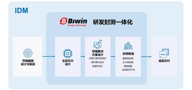 围绕半导体存储器产业链,佰维存储在业内率先构筑了研发封测一体化的经营模式,布局存储解决方案研发、主控芯片设计、存储器封测/晶圆级先进封测和存储测试机等产业链关键环节。