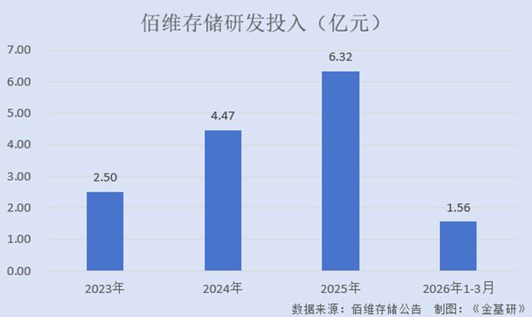 2023-2025年及2026年1-3月,佰维存储的研发投入分别为2.50亿元、4.47亿元、6.32亿元、1.56亿元,最近三年CAGR为59.05%。