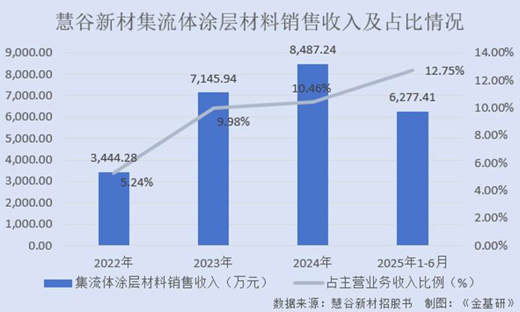 在集流体涂层材料领域,2022-2024年及2025年1-6月,慧谷新材的集流体涂层材料销售收入分别为3,444.28万元、7,145.94万元、8,487.24万元、6,277.41万元,占主营业务收入的比例分别为5.24%、9.98%、10.46%、12.75%,呈快速增长趋势。