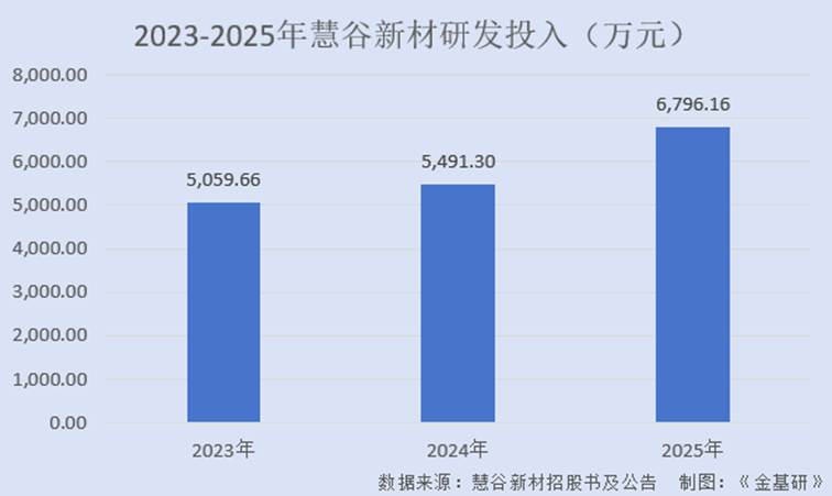 在研发投入方面,慧谷新材从材料体系创新、工艺技术提升、产品优化迭代三方面持续加大研发投入力度。2023-2025年,慧谷新材的研发投入金额分别为5,059.66万元、5,491.30万元、6,796.16万元,CAGR为15.90%。