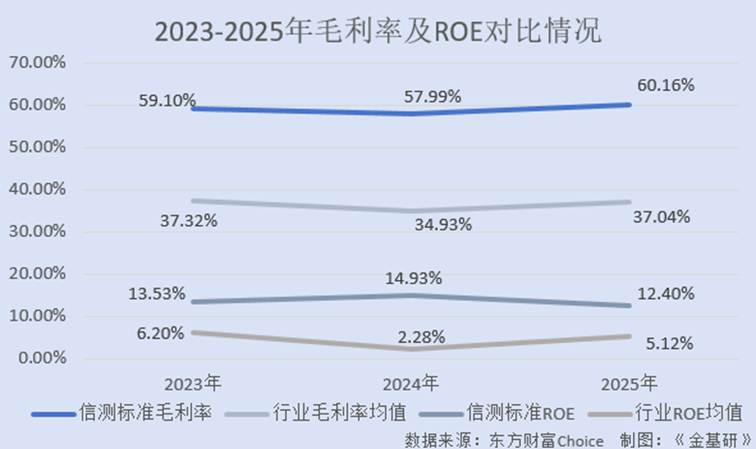 2023-2025年,信测标准的毛利率分别为59.10%、57.99%、60.16%;ROE分别为13.53%、14.93%、12.40%。其中,2025年,得益于规模效应及精细化管理带来的成本节约,信测标准的毛利率同比增加了2.17个百分点。