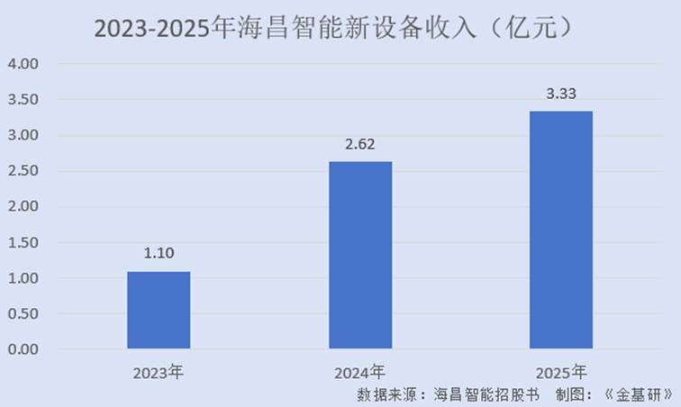 根据招股书数据,2023-2025年,海昌智能新设备收入分别为1.10亿元、2.62亿元、3.33亿元,CAGR达74.33%。