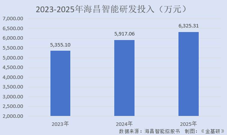 研发投入方面,根据招股书数据,2023-2025年,海昌智能的研发投入分别为5,355.10万元、5,917.06万元、6,325.31万元,呈逐年增长趋势。