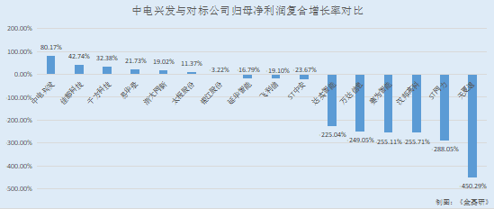 同期,中电兴发对标公司千方科技、易华录、佳都科技、飞利信、ST中安、赛为智能、达实智能、太极股份、万达信息、延华智能、汉邦高科、银江股份、浙大网新、ST网力、天夏退归属于母公司股东净利润复合增长率,分别为32.38%、21.73%、42.74%、-19.1%、-23.67%、-255.11%、-225.04%、11.37%、-249.05%、-16.79%、-255.71%、-3.22%、19.02%、-288.05%、-450.29%,上述对标公司归属于母公司股东净利润复合增长率为-110.59%。