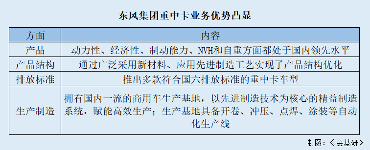 重中卡板块为东风集团商用车优势业务,东风集团重中卡业务优势凸显,具备业内一流的产品特性与生产制造能力。