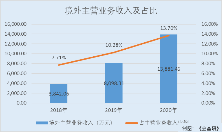 2018-2020年,志特新材境外主营业务收入分别为3,842.06万元、8,098.31万元和13,881.46万元,占主营业务收入比重分别为7.71%、10.28%和13.7%。