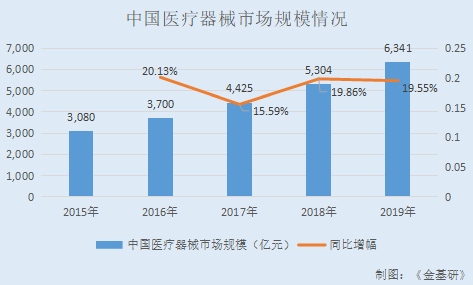 受益于经济水平的发展,健康需求不断增加,中国医疗器械市场规模持续扩大,从增速上看,中国医疗器械市场规模年增速平均维持在20%左右。