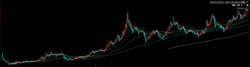 2019年10月25日,海尔生物成功上市,当日收盘价为30.47元/股。截至2021年4月30日,海尔生物股价自上市以来总体维持震荡走高趋势,当日收盘价为99.15元/股,相较上市之日增长225.4%;股价历史最高点出现在2021年4月27日,为103.62元/股。