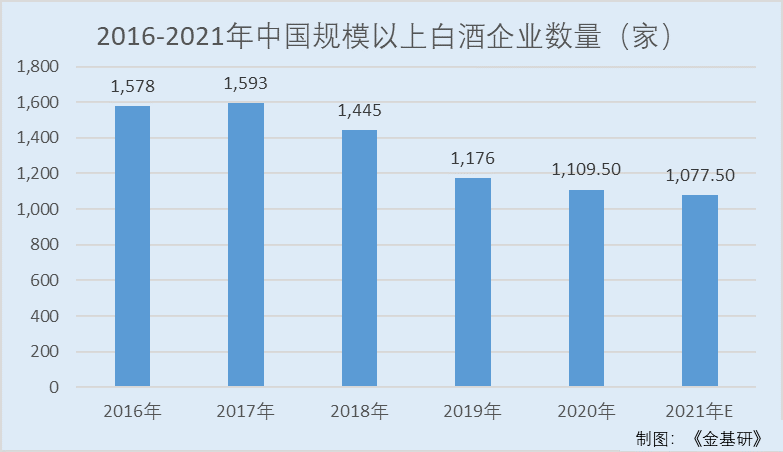 预计2021年,中国规模以上白酒企业数量为1,077.5家。