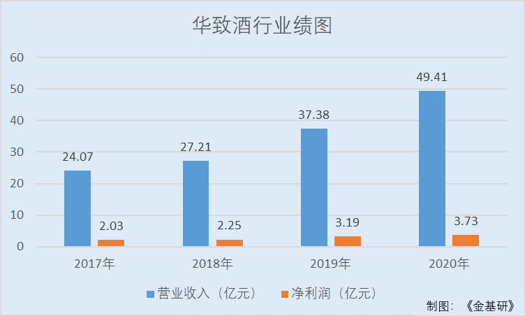 2020年,华致酒行实现的营业收入为49.41亿元,同比增长32.2%;实现的归母净利润为3.73亿元,同比增长16.82%。