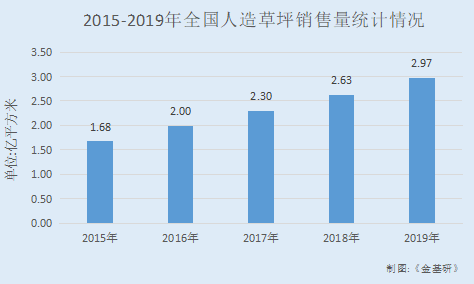 从行业上看,全球人造草坪行业属于新兴行业,目前仍处于快速发展阶段。根据AMI Consulting统计数据,2019年全球人造草坪销售金额为178亿元,销量为2.97亿平方米。2015-2019年,全球人造草坪销量分别为1.68亿平方米、2亿平方米、2.3亿平方米、2.63亿平方米、2.97亿平方米,年均复合增长率为14.83%。