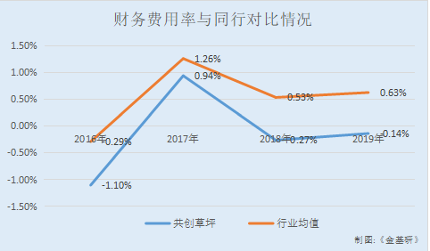 2016-2020年及2021年第一季度,共创草坪的财务费用率分别为-1.1%、0.94%、-0.27%、-0.14%、1.85%及-1.03%。2016-2019年,同行业上市公司傲胜股份、威腾体育公司的财务费用率均值分别为-0.29%、1.26%、0.53%、0.63%。