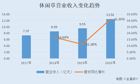 根据《金基研》统计分析,近年来,休闲草占主营业务收入的比例不断增加。