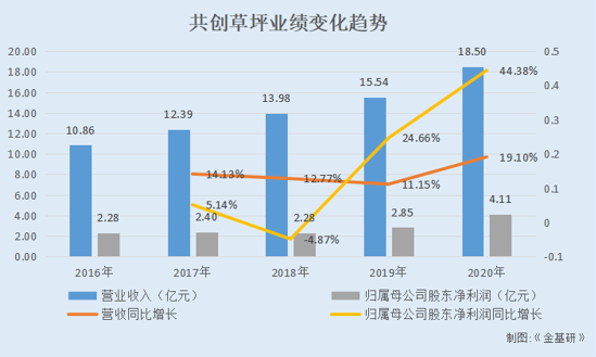 在行业快速发展的背景下,2020年,共创草坪营业收入与净利润同比双增长,实现销售业绩再突破。