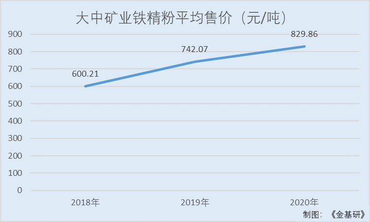 2018-2020年,大中矿业铁精粉平均售价分别为600.21元/吨、742.07元/吨和829.86元/吨。