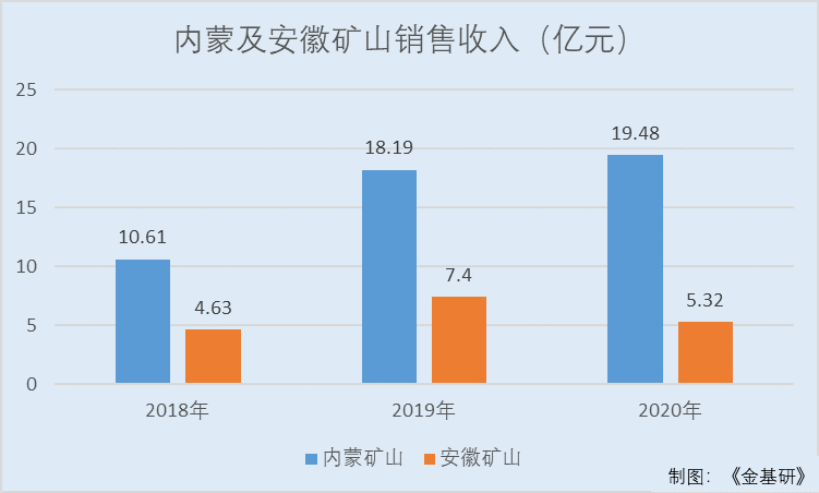 报告期内,即2018-2020年,大中矿业来自内蒙矿山的销售收入分别为10.61亿元、18.19亿元、19.48亿元,占当期主营业务收入的比例分别为69.62%、71.09%、78.54%;同期,大中矿业来自安徽矿山的销售收入分别为4.63亿元、7.4亿元、5.32亿元,占当期主营业务收入的比例分别为30.38%、28.91%、21.46%。