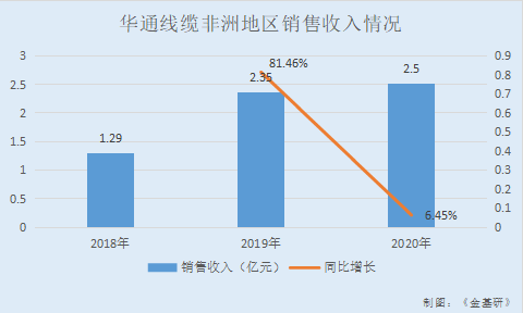 2018-2020年,华通线缆来源于非洲地区的销售收入分别为1.29亿元、2.35亿元、2.5亿元,2019-2020年分别同比增长81.46%、6.45%。