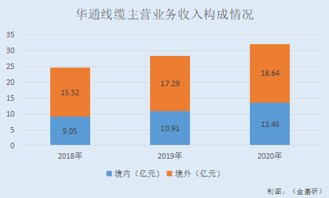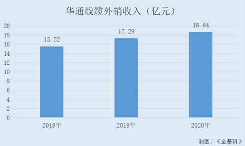 2018-2020年,华通线缆外销收入总计分别为15.52亿元、17.29亿元、18.64亿元。