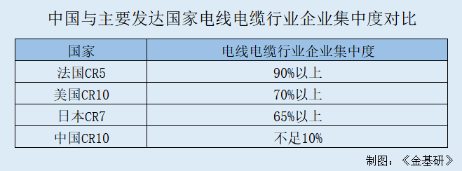 就国内行业而言,国内电线电缆行业集中度显著较低,行业内企业发展空间大。