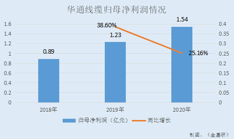 同期,华通线缆归属于母公司股东的净利润分别为0.89亿元、1.23亿元、1.54亿元,2019-2020年分别同比增长38.6%、25.16%。