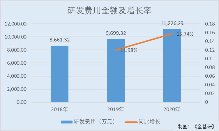 观其研发投入情况。2018-2020年,立昂微研发投入总额分别为8,661.32万元、9,699.32万元、11,226.29万元,2019-2020年分别同比增长11.98%、15.74%。