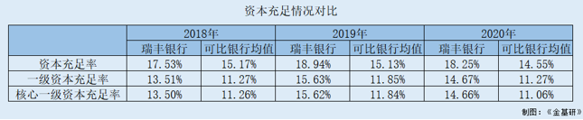 对此,瑞丰银行资本充足率在持续达标的前提下,维持在较高水平,且高于行业平均水平。瑞丰银行风险抵补能力突出。