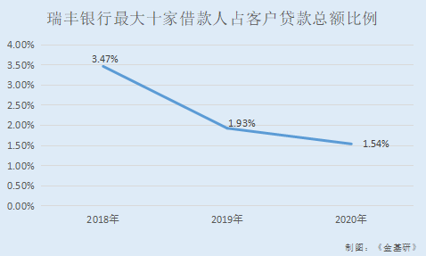 在上述基础上,瑞丰银行遵循监管部门的要求,不断加强贷款的风险管理,合理配置信贷资源,对大额贷款设置严格信用资质要求,严格控制新增大额贷款数量及额度,坚持“零售银行”战略转型,通过将贷款做小、做散以分散贷款风险,最大十家借款人集中度逐年下降,单一客户集中度显著低于10%的监管要求。