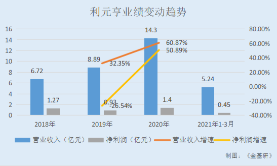 值得注意的是,2021年1-3月,利元亨实现营业收入5.24亿元,较上年同期增长201.96%;净利润为0.45亿元,较上年同期增580.7%。
