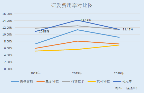 2018-2020年,利元亨的研发费用率分别为10.88%、14.14%、11.48%。