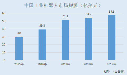 从整体上看,据前瞻网数据,2019年,中国工业机器人的市场规模已经达到了57.3亿美元。市场规模的增速仍保持向上的势头。