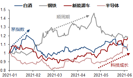回顾5-6月大类资产的表现,权益整体占优,风格偏向成长,大部分风格估值处于合理区间。从基本面来看,基本面的超预期来自于“供需缺口”下的A股盈利改善,以中小盘和顺周期为主;从流动性来看,Q2广义流动性收敛,但狭义流动性持续宽松,这对A股投资者的流动性预期产生积极影响,也对偏成长类风格的表现形成支撑。同时4-5月人民币汇率快速升值创18年中以来新高,对A股形成了阶段性提振,外资流入提速,直接带来了增量资金。